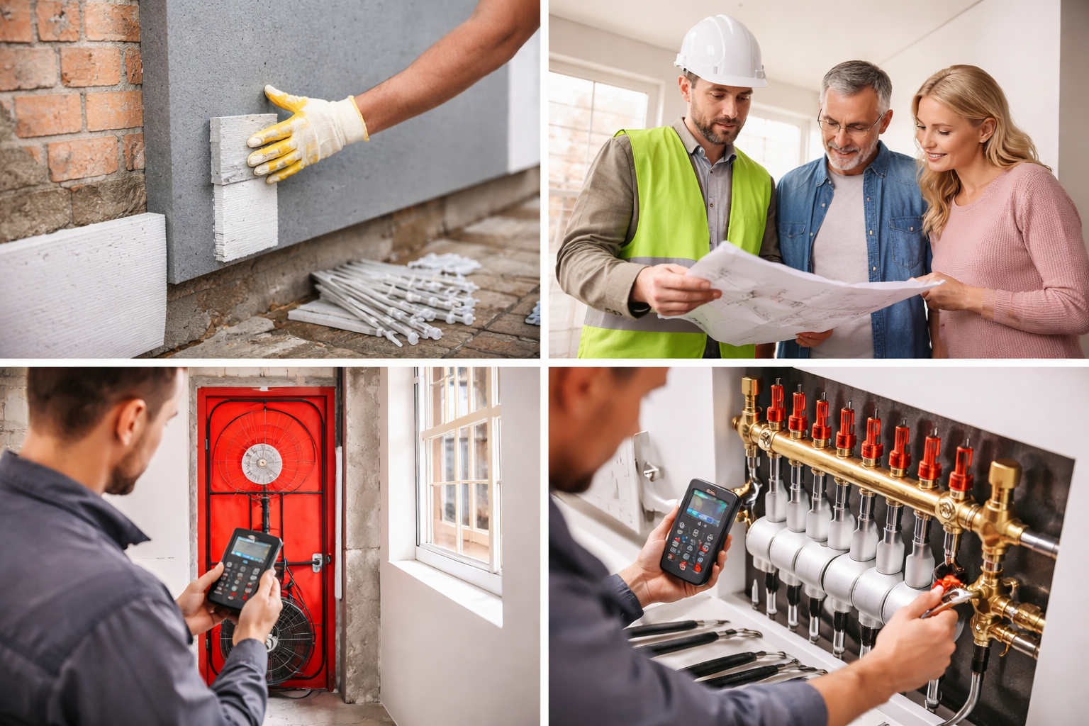 - Durchführung von Blower-Door-Tests vor und nach der Sanierung (Kosten ca. 400–600 €).